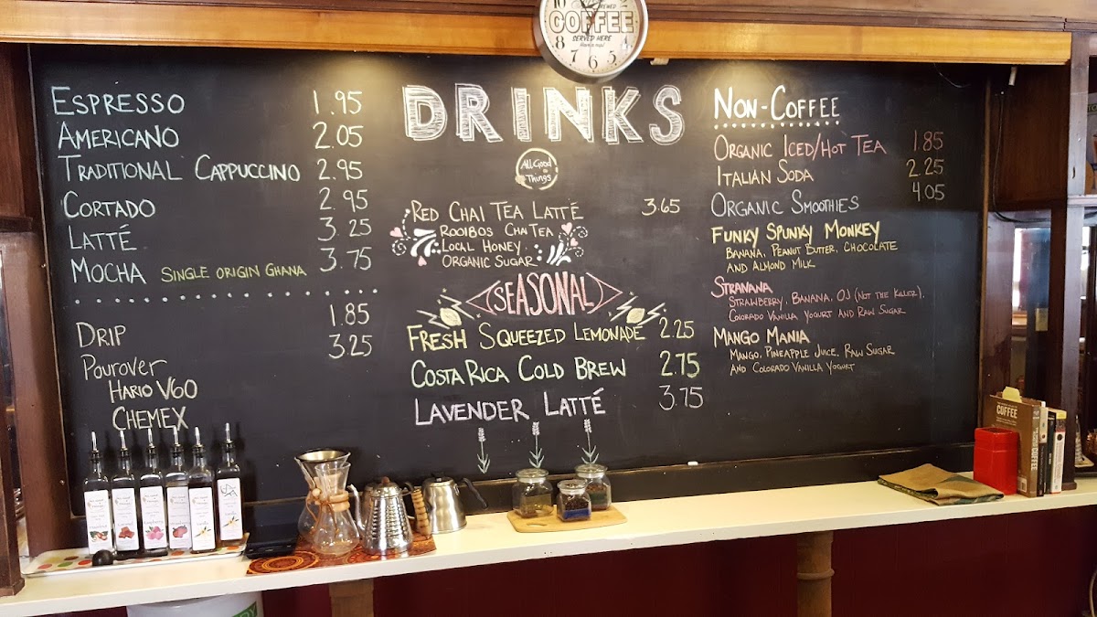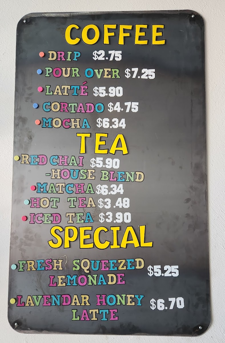 Highlights include the artisanal pour over priced at $7.25 and the fragrant lavender latte. For tea lovers, the red chai and matcha are must-tries. To complement your beverage, indulge in a delightful organic smoothie or a classic cappuccino.